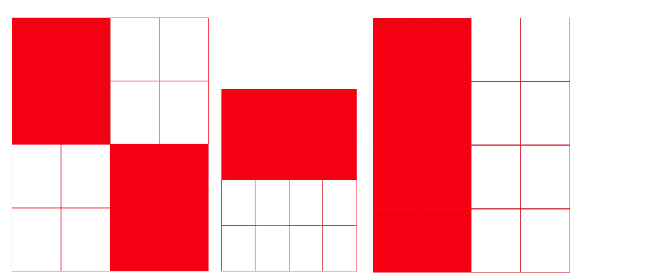 Though a single powerful image is preferred, this layout system is to be used when there are more than one or two photos in a communications piece. The format is divided into 16 equal rectangles. Half the page will be filled with colour and type, and the other half will be filled with images (1 to 4 photos).