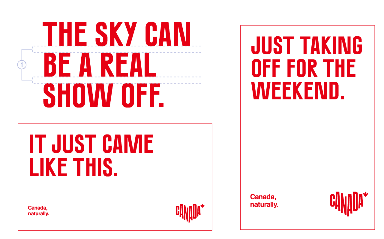 Canada Bold stands out due to its offbeat yet approachable style, and is used as headlines. Over time, this unique font has become a strong branding element associated with Destination Canada.